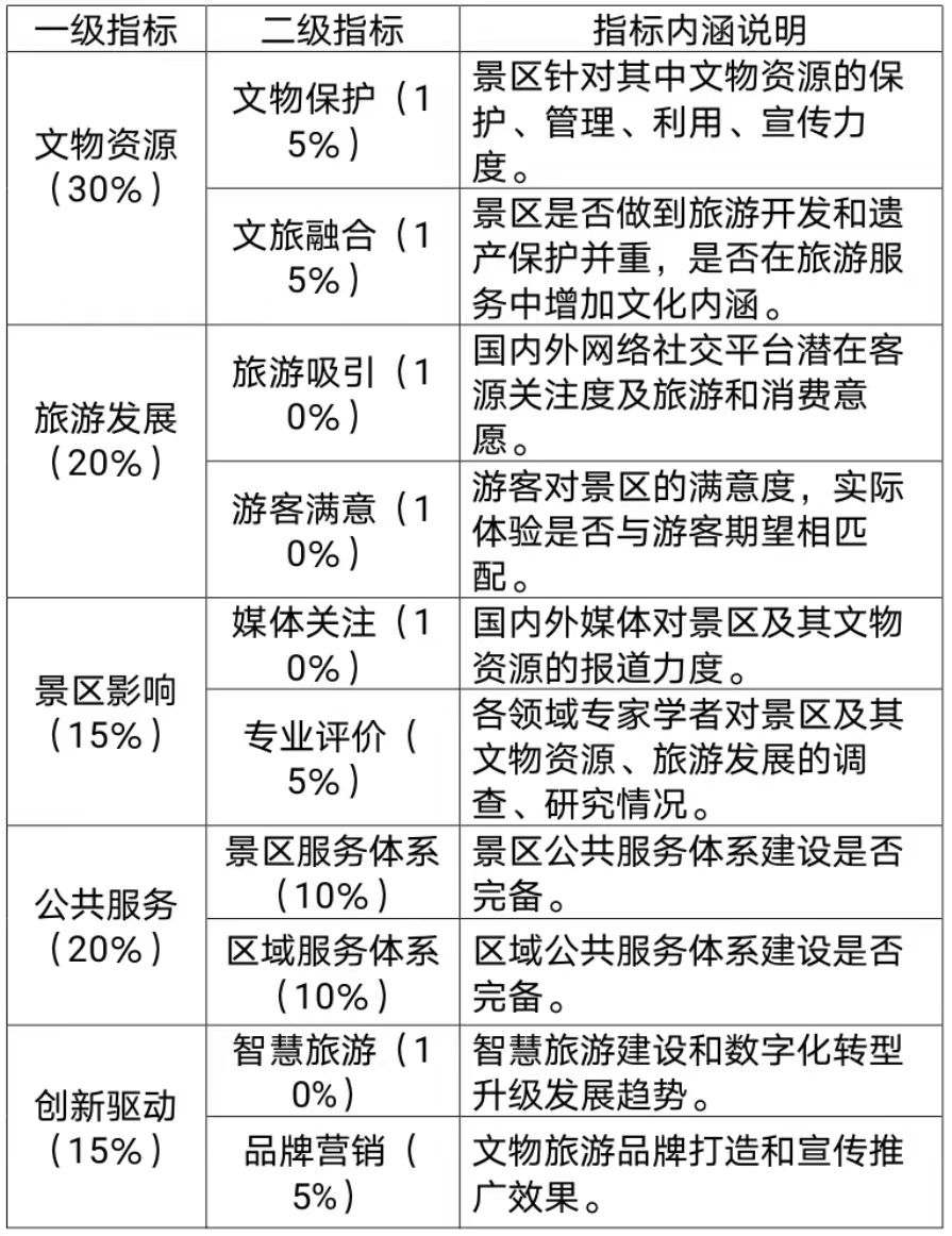 表1 全国文物旅游景区影响力评估指标体系