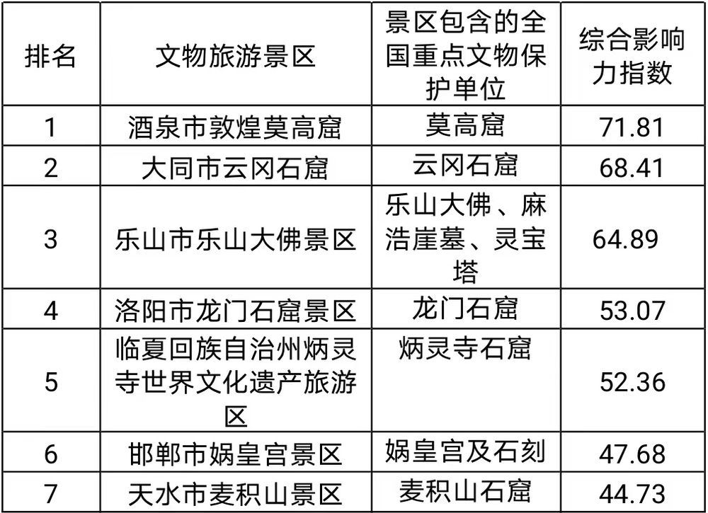 2.石窟寺文物旅游景区影响力TOP10