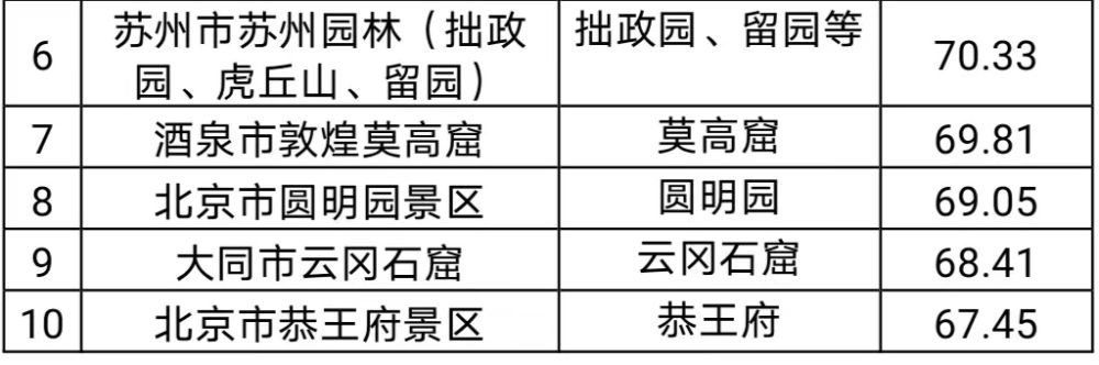 2、2021年度全国各类文物旅游景区影响力TOP10